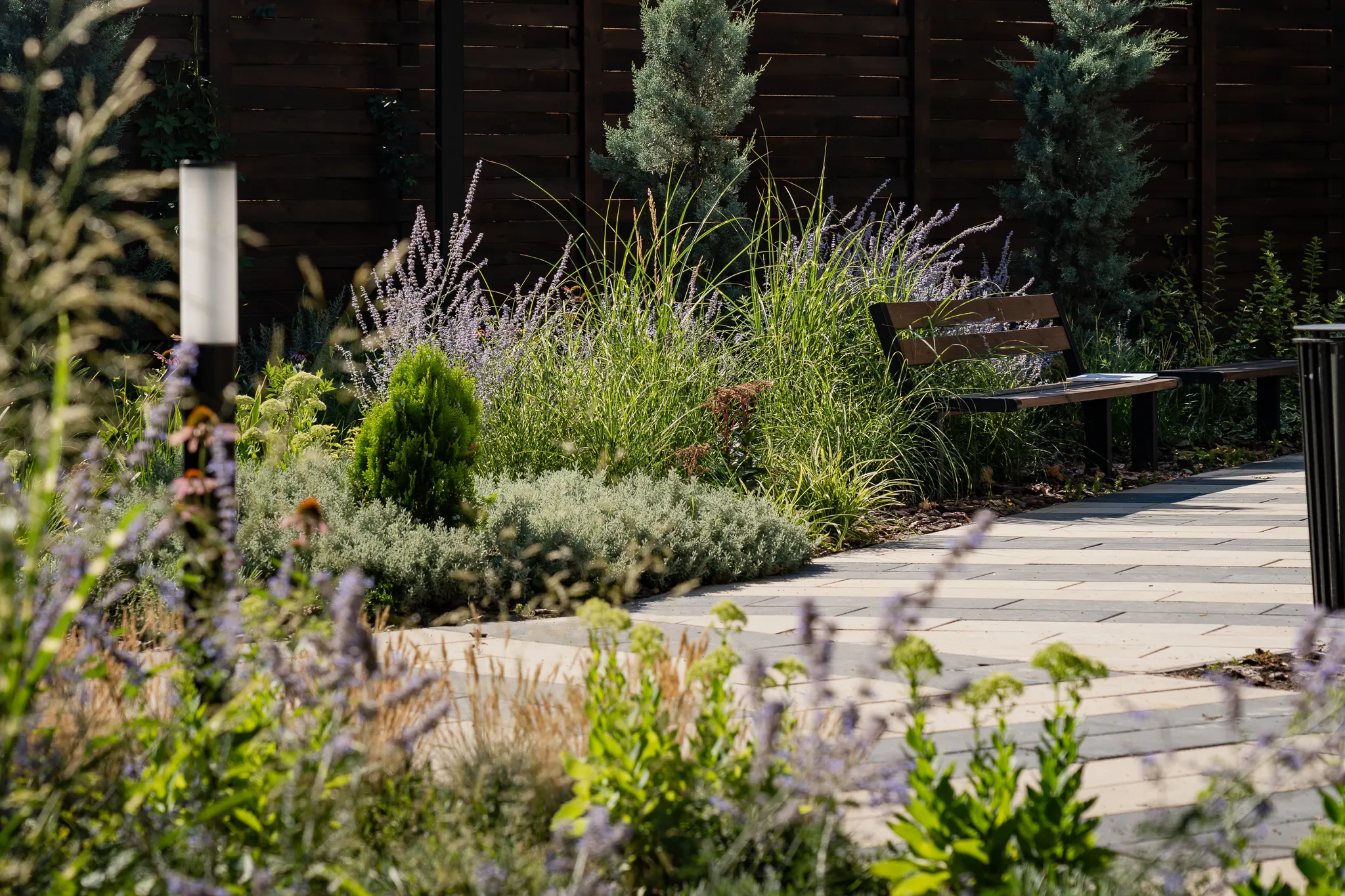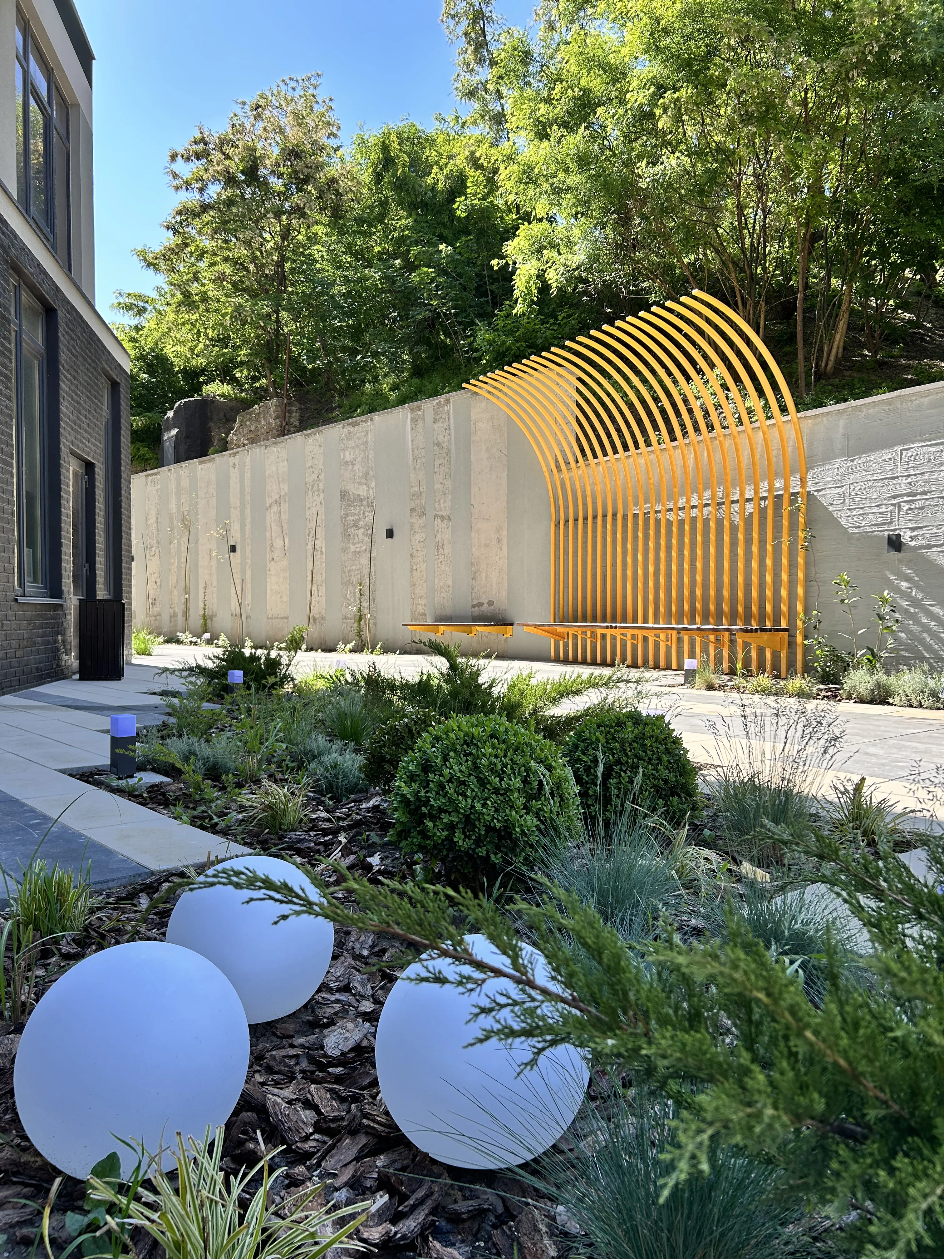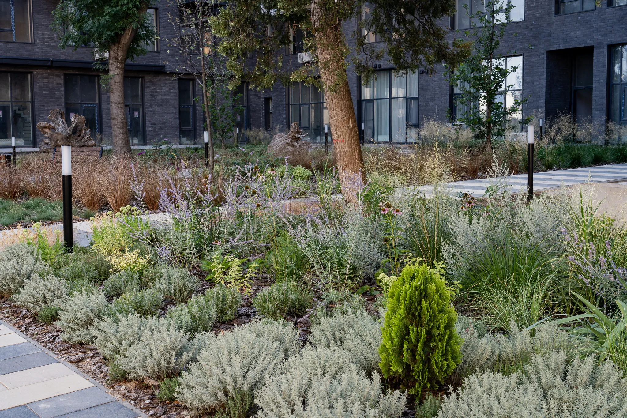 Частий головний біль девелоперських компаній - є проєктний відділ, але немає міських архітекторів, які продумають і пожежний проїзд, і зонування індивідуальної території, і органічне відділення приватної території від громадської. Або ж є міські архітектори, але немає ландшафтного, який знає точно якими рослинами відділити приватні патіо від громадської зони, бо тут наприклад постійна тінь, вітряна сторона, бігають хатні улюбленці, та і туї рядочком саджати вже якось мувітон. Або ж є ландшафтний, але немає генпланистів, і ніхто не знає, як відводити воду на цій складній ділянці. Або ж немає тих, хто розробляє МАФи і їх конструктив. А сучасне озеленення і обслуговування сада – це взагалі як вища математика. Ще й під кожний вид робіт треба тендерити і шукати підрядників – ким робити мощення, освітлення,перголи, басейни, озелення, інженерні роботи…знайомо?